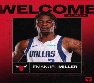 公牛官方:球队裁掉DJ斯图尔德并与伊曼纽尔米勒签下双向合同