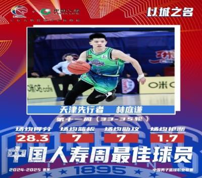 体育资讯1月26日报道宣称 CBA官方宣布,天津队后卫林庭谦当选第十一周周最佳球员。