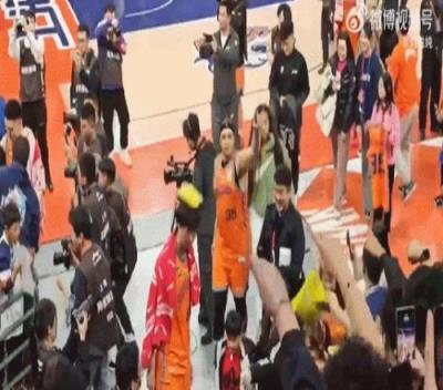 赛后,上海球迷再次为洛夫顿献上“薯片雨”,但其中一包正好砸在王哲林头上,洛夫顿见状也伸手示意要小心。