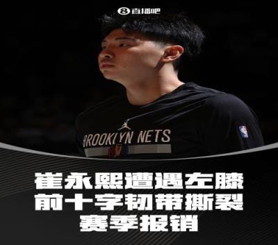 体育资讯12月15日报道宣称 布鲁克林篮网官方宣布,球队新秀崔永熙被诊断为左膝前十字韧带撕裂,赛季报销,预计他可以完全康复。