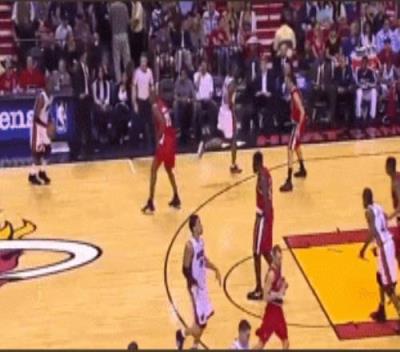 这招体现背打上,也是:韦德很擅长低重心拱后,大劈叉横拉出一步空间,不收腿,直接起,靠平衡与协调调整姿势。
