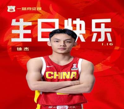 体育资讯1月16日报道宣称 今天是广东男篮后卫徐杰的25岁生日,中国篮球之队官博为其送上祝福。
