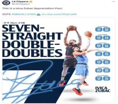 进击的祖尼尔快船为祖巴茨全明星拉票:连续7场两双啦