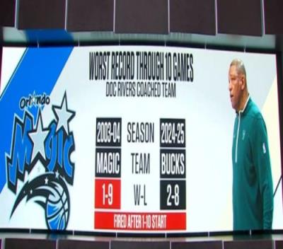 据统计,这是里弗斯执教生涯的第二差开局战绩,他曾在2003-04赛季时,带领魔术打出1胜9负的糟糕开局。