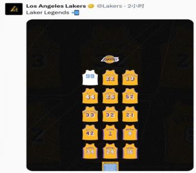 下一位会是谁湖人官方晒队史16件已退役球衣:传奇们