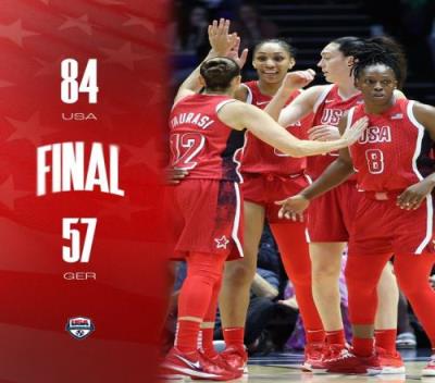 体育资讯7月24日报道宣称 今天结束的一场女篮热身赛,美国女篮84比57击败了德国女篮。