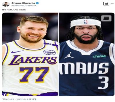 体育资讯02月02日报道宣称 一笔宇宙级的重磅交易,Shams报道:东契奇+克莱伯+莫里斯去湖人,独行侠换来浓眉+克里斯蒂+2029年首轮!这是一笔三方交易,还涉及到爵士。