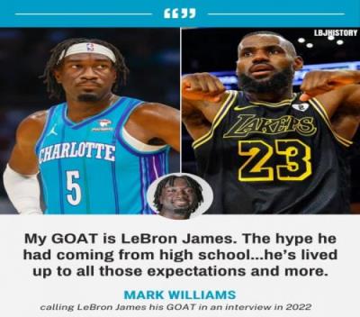 网友挖出了马克-威廉姆斯2022年称赞詹姆斯的言论,他说道:“我的GOAT是勒布朗-詹姆斯,他从高中毕业后就打出了足够的声势,他已经满足了所有的外界期待,甚至超越了外界期待。还有他的场外成就,建造一所学校,鼓励他的社区,所有的这些事情都让他成为GOAT。”