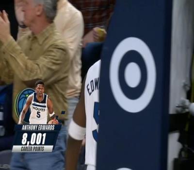 里程碑!爱德华兹总得分来到8001成第三年轻8千分先生&仅次詹杜