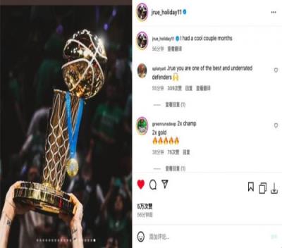 再次同年夺NBA总冠军&奥运金牌!霍勒迪晒奥布莱恩杯+金牌P图