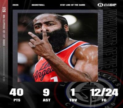 全场比赛哈登出战36分钟,24投12中,三分球9中4,12罚全中爆砍全场最高的40分外加5板9助1断,仅有1失误。