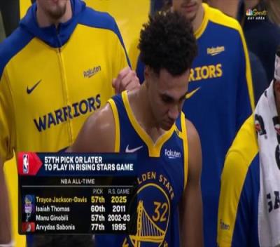 比赛中转播方晒出一组数据,NBA历史上第57顺位及更后的球员能打全明星新秀赛的有以下4人: