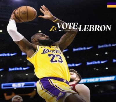 赛后,湖人官方为詹姆斯拉票全明星,并写道:“他40岁啦。”