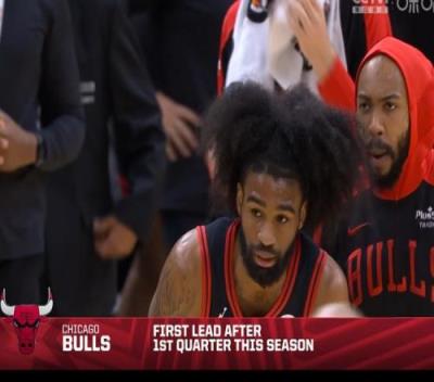 据数据统计,这是公牛本赛季首次首节取得领先(公牛目前共打了8场比赛,3剩5负排在东部第8位)。