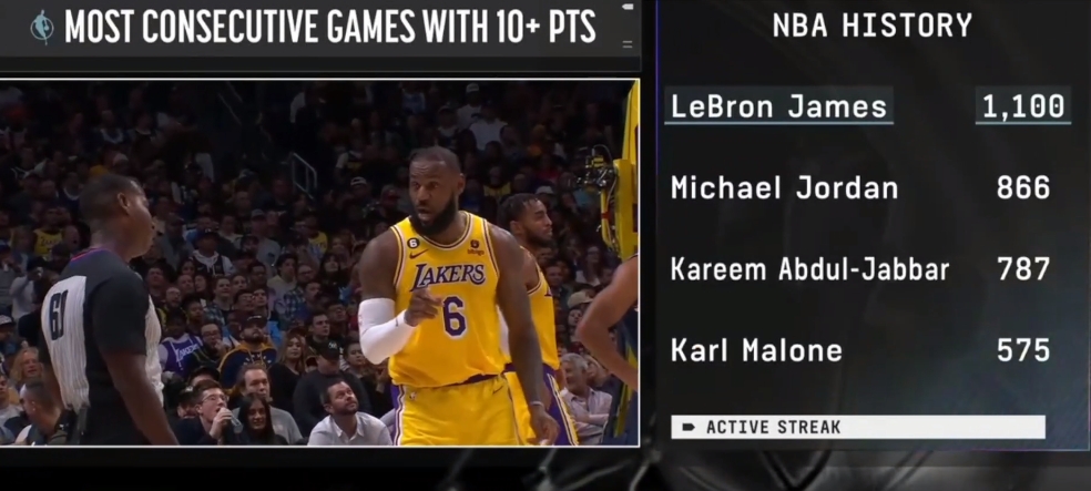 2022年10月27日 连续1100场得分上双