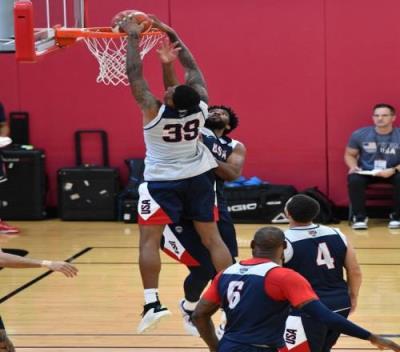 此前,小贾巴里作为美国男篮陪练队的成员与正选队进行对抗。