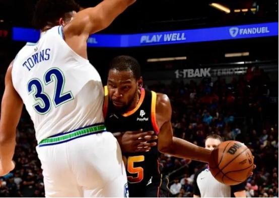 NBA常规赛继续进行,太阳队在主场以133-115战胜了森林狼队,终结了对手的连胜纪录。