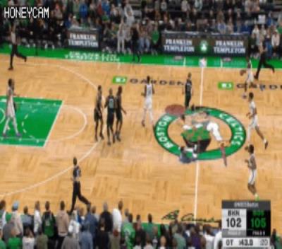 比赛最后40.2秒,篮网球员卡梅隆-约翰逊接到传球后移动了他的中枢脚,此为走步违例。