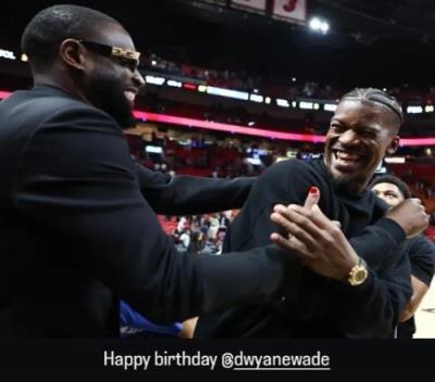 热火球星巴特勒更新IG动态晒出自己与韦德的合照,并送上了祝福:“生日快乐@韦德。”