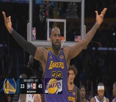 库里追梦连续空篮不进詹姆斯连续三个三分湖人领先22分了!