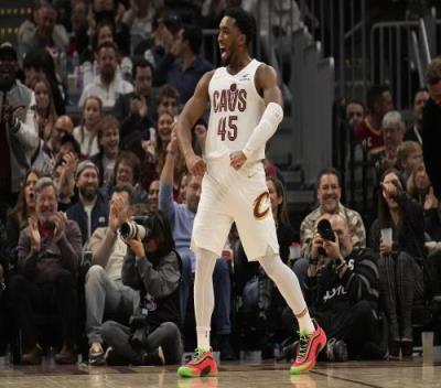 米切尔上一战对勇士第三节连续4记硬解三分一波流打崩勇士,此役开场延续火热手感,单挑八村塁换防硬解,带领首发21-12打停湖人。