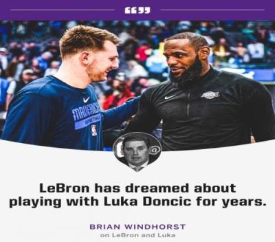 名记Windhorst在节目中说道:“詹姆斯想和东契奇合作已经好几年了,这是他特别特别想的事情。”