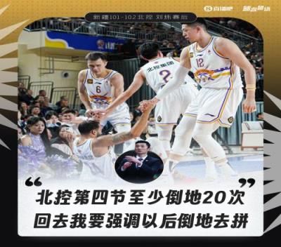 赛后出席新闻发布会时,新疆队主帅刘炜总结道:“比赛非常精彩也非常激烈,我们球队要向北控队学习,从四节比赛来看北控队至少20次倒地,说明拼抢很积极思想态度也很好,所以回去我也会跟队员强调,每一次都要拼到地上去倒地。”