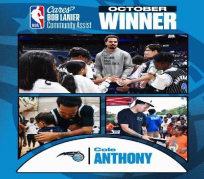 体育资讯11月16日报道宣称 今日,NBA官方宣布,魔术后卫科尔-安东尼获得十月份的“鲍勃-兰尼尔”社区关怀援助奖。