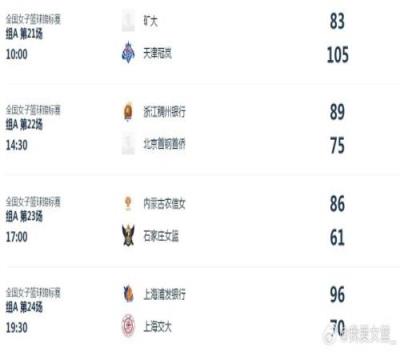 浙江稠州银行89-75北京首钢首侨。浙江队5人得分上双,张敏29分8篮板,孙梦昕17分,周琪13分,孙凤艺11分,王佳琦10分6助攻。新加盟北京队的赵志芳,为球队贡献全队最高的19分。