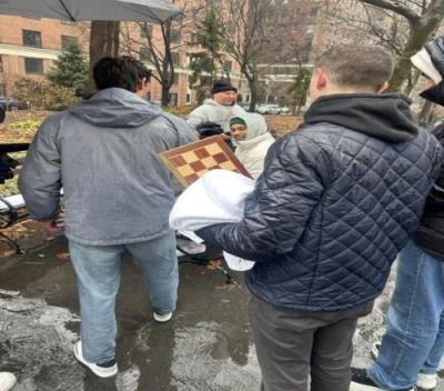 还真去了文班早晨前往华盛顿广场公园与人冒雨对弈