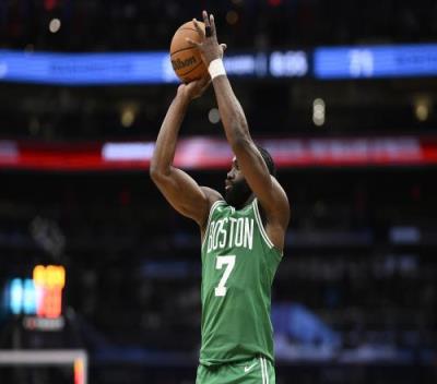 上半场比赛中凯尔特人外线手感不佳,全队共42次出手其中26次为三分,全队合计26投仅7中。