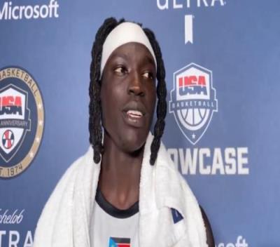“我们的国家甚至没有任何一个室内篮球场,我们没有任何那样子的东西。我们就是一群难民,在一年中抽出几周时间,尽力去对抗全世界最好的球员们。这场比赛的意义对于我们来说远超篮球本身。那些与我们竞争并理解的人们都知道,非洲篮球是未来的一部分,这只是时间问题。南苏丹是一个人口只有1100万的东非小国,但今天我们能够团结在一起,我们希望今后能够继续去做不同的事情来建设国家,直到有一天,我们能骄傲地说出,我们来自南苏丹。”