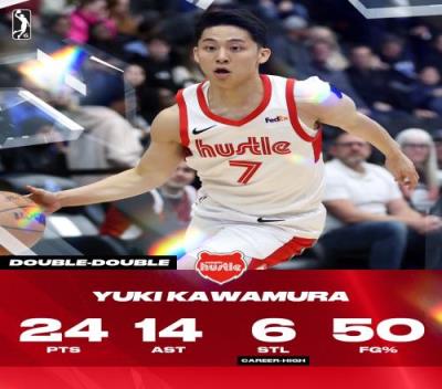 本场比赛,灰熊双向合同后卫河村勇辉继续在G联赛发光发热,他获得全队最多的40分35秒出场时间,也不负众望拿到全队最高的得分、助攻以及抢断,14投7中,其中三分10中4,另外罚球4中3,砍下24分3篮板14助攻6抢断(生涯新高)1盖帽,出现3次失误,正负值-1。