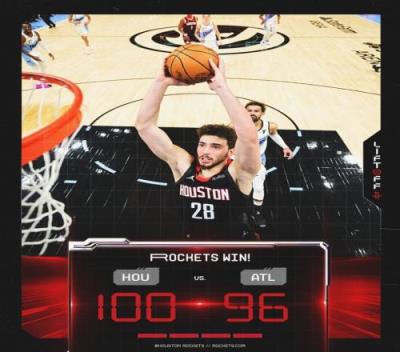 体育资讯1月29日报道宣称 NBA常规赛,火箭100-96力克老鹰。
