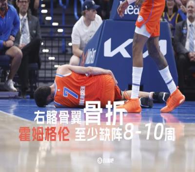 北京时间下午,雷霆官方宣布,霍姆格伦遭遇右髂骨翼骨折,预计可以在本赛季回归,他回归赛场的方案将在8-10周后更新。