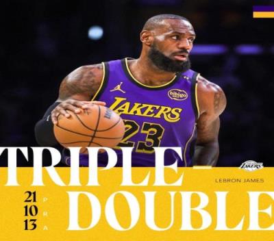 湖人官方晒出詹姆斯三双海报,配文写道:“40岁!让一切看起来游刃有余。”