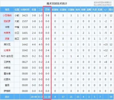 上半场魔术全队罚球机会不少,但命中率不高,全队18罚仅11中,其中只有卡特2罚全中。