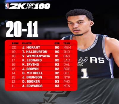 体育资讯08月24日报道宣 NBA2K官方公布了新赛季能力值Top20-11,具体如下: