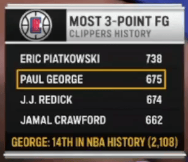 近日洛杉矶快船队与迈阿密热火队的比赛激烈进行中,乔治在本场比赛中展现出了出色的投射能力,成功命中了三枚三分球。这也使得乔治在快船队的生涯三分球数达到了675个,超越了前队友雷迪克,登上了队史第二的宝座。