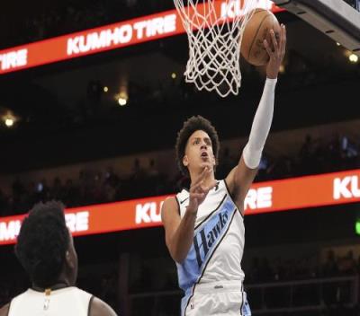 谈到队友杰伦-约翰逊的进步,特雷-杨说道:“我觉得打得越多,经验就越丰富,你越会感觉到自己的声音越来越重要,当你站出来说话时,周围的人会倾听你的意见。而我觉得,这一点在杰伦身上可以看到,每一场比赛都越来越明显。”