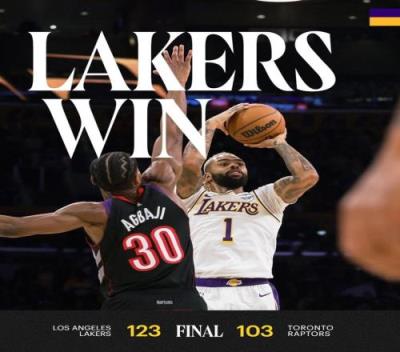 体育资讯11月11日报道宣称 NBA常规赛,湖人123-103击退猛龙。