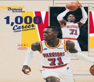 在本场比赛中,施罗德生涯三分命中数突破1000大关,赛后,他在INS写道:“职业生涯命中了1000记三分