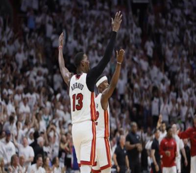 此役,巴特勒出战33分钟,15中7,三分2中0,罚球4中4,得到18分3篮板2助攻;阿德巴约出战33分钟,15中7,三分2中0,罚球2中2,得到16分11篮板4助攻。