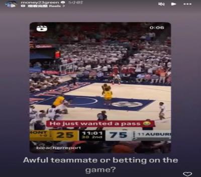 勇士球星追梦格林转发了该视频,并评论道:“是糟糕的队友还是赌球了?”