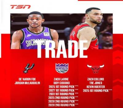 体育资讯2月4日报道宣称 今日公牛、马刺与国王三方交易官宣,福克斯去往马刺!拉文去往国王!