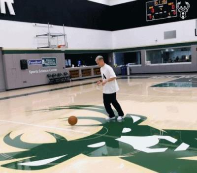 体育资讯12月27日报道宣称 今天,西甲足坛豪门巴塞罗那的球星奥尔莫造访了雄鹿的球馆。