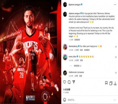 对此他更新INS写道:“梦想成真了!感谢我的球队,我的国家,休斯敦,还有所有支持我的球迷。而这只是开始;要代表土耳其亮相全明星舞台啦! ⭐️