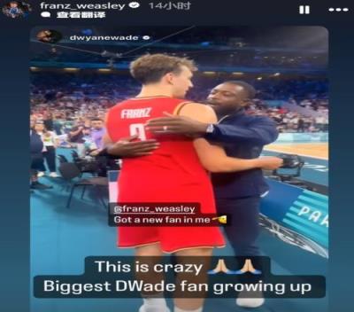 小瓦格纳转发,并写道:“这太疯狂了,成长阶段,我就是韦德最大的粉丝。”