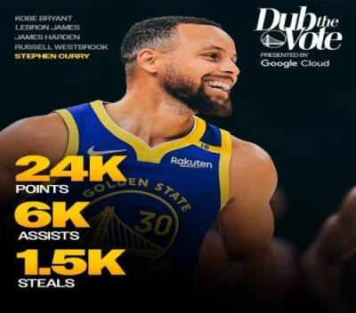 体育资讯12月21日报道宣称 今日勇士官方晒出库里一项数据并为库里拉票。