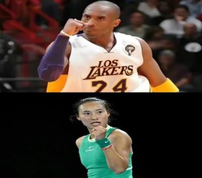 郑钦文:“当我第一次听说我长得像科比的时候,我觉得一点都不像科比。当他们把我晒黑的照片跟科比对比的时候,会发现某些地方跟科比还是蛮像的。我觉得更多的时候还是精神会像,因为科比的精神非常值得我学习。科比精神激励着每一个运动员。”